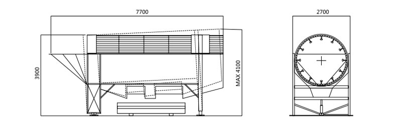 主電機功率: 15 kw 處理皮張重量: 6000 kg/h 出皮口調節頃斜度距離: 200 mm 外型尺寸: 長 7700 mm ×寬 2700 mm×高 3900 mm