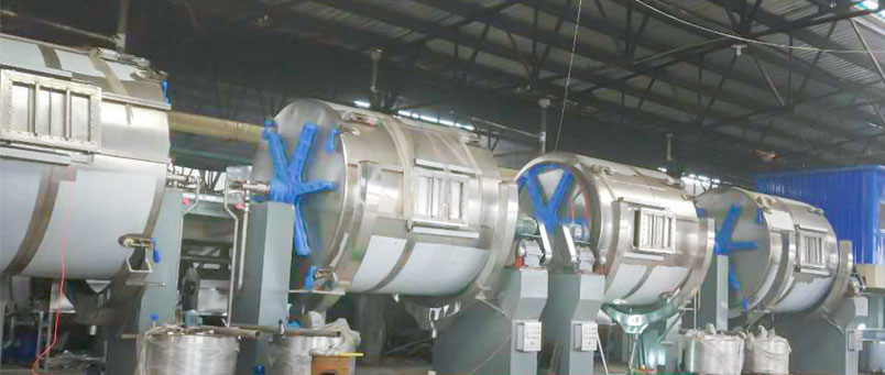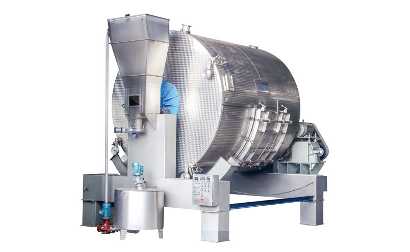 主要功能與特點(diǎn) 使用該轉(zhuǎn)鼓可以減少浸水、鞣制、染色工序用水量,可以減少化工原料用量。鼓內(nèi)采用新式結(jié)構(gòu),在同樣工藝時間內(nèi)使皮張 更柔軟、染色更均勻。比普通轉(zhuǎn)鼓多裝載30%以上,裝載總量可以達(dá)到轉(zhuǎn)鼓容積的60%—70%。 1、轉(zhuǎn)鼓鼓體采用不銹鋼板材制作,鼓體內(nèi)外層之間用優(yōu)質(zhì)保溫材料填充。轉(zhuǎn)鼓另一端裝有含多種功能的交換器系統(tǒng),鼓內(nèi)有單方向旋轉(zhuǎn)自動液體循環(huán)系統(tǒng)。為方便操作,在機(jī)器右側(cè)裝有輔助控制電器箱。 2、轉(zhuǎn)鼓一側(cè)配置重錘排氣閥,從而確保鼓體在工作過程中始終鼓內(nèi)無壓力。 3、鼓體內(nèi)裝有帶傾斜度的長檔板,這種擋板機(jī)械作用大,特別適合牛皮加工 4、為縮短轉(zhuǎn)鼓清洗時間,在鼓體一側(cè)增加了兩組手動排水裝置。 5、傳動系統(tǒng):電動機(jī)經(jīng)轉(zhuǎn)鼓專用減速箱變速后,再通過齒輪帶動鼓體轉(zhuǎn)動。減速箱的主動軸上配置了氣動剎車裝置。 6、電氣控制系統(tǒng):采用變頻調(diào)速、PLC電路控制。 主要技術(shù)參數(shù)